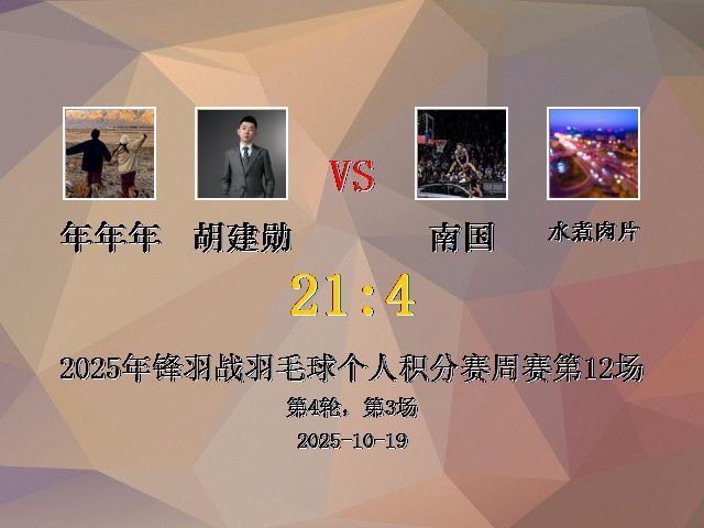 年年年/胡建勋 VS 南国/水煮肉片