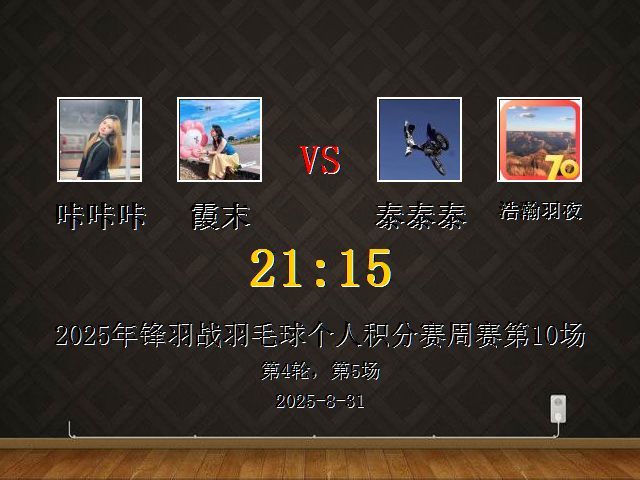 咔咔咔/小徐在努力 VS 浩瀚羽夜/霞末